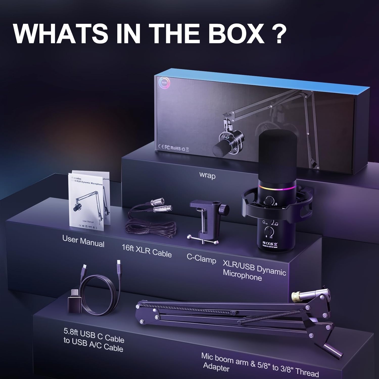 Introducing the ultimate XLR/USB Dynamic Microphone Kit designed for all your streaming, podcasting, and gaming needs! This versatile PC microphone is a game-changer with its advanced features and high-quality performance.